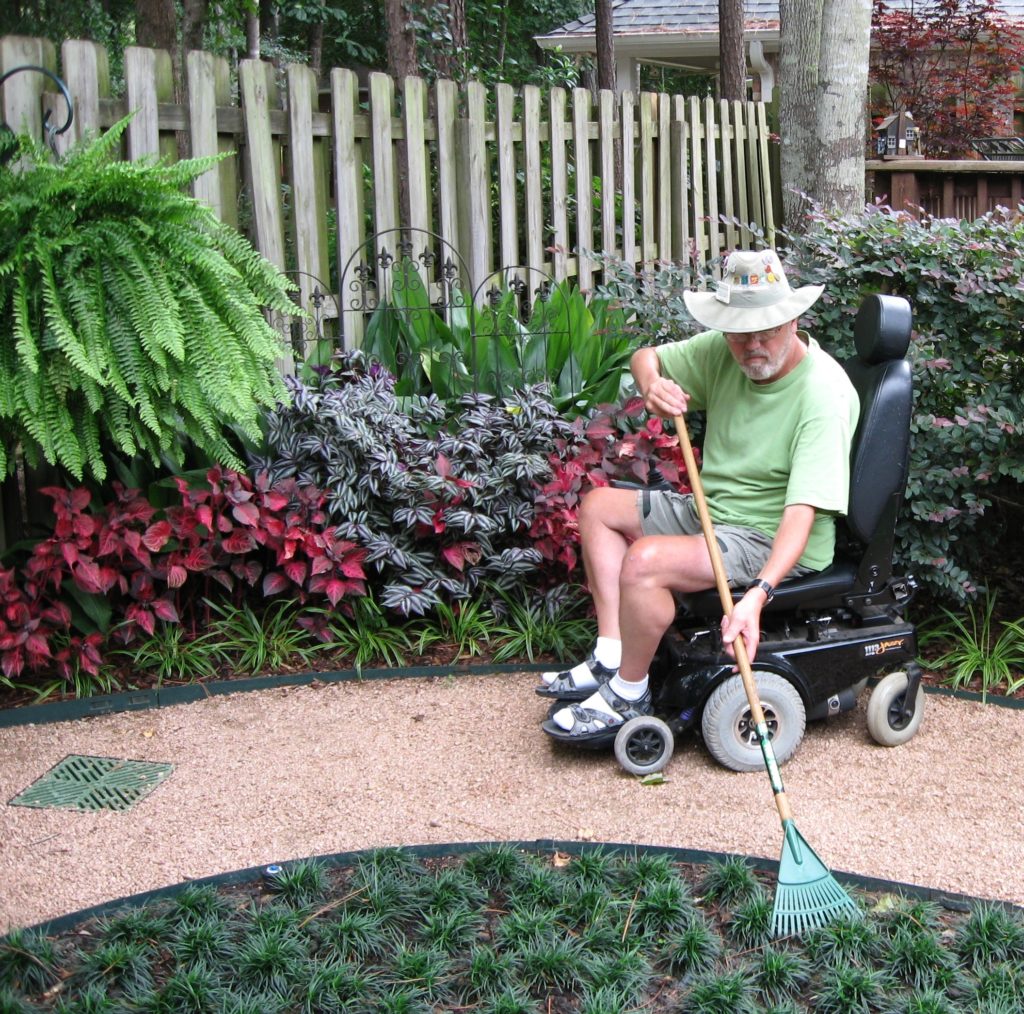 For folks who enjoy decorative gardening and landscaping, installing perennials rather than annuals can make a garden much more easy to maintain and much more accessible for those with disabilities. This cuts down on the amount of work needed—including the amount of geoff the ground—and still allows for a beautiful and creative garden space. Annuals can be added, of course—in elevated planters, window boxes, or containers on a patio in order to make them easier to access and maintain.