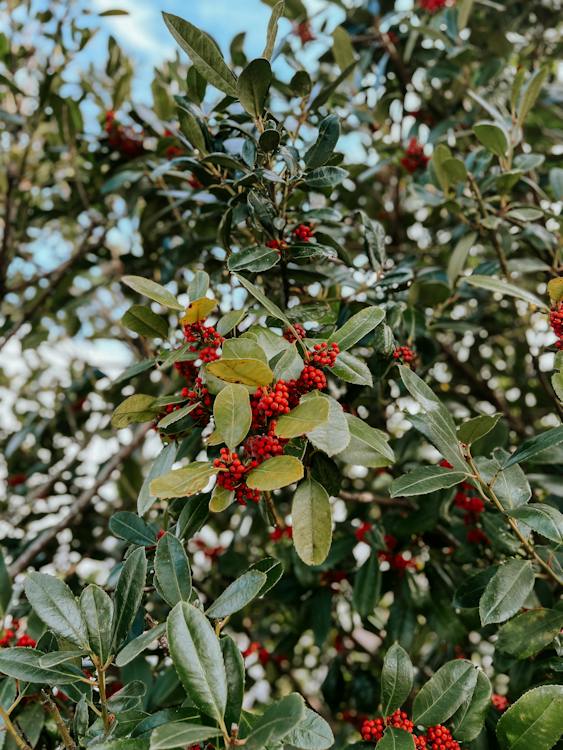 While Ilex aquifolium does tolerate a variety of conditions—often serving as a pioneer species in disturbed areas—it does prefer shady spaces with moist soil. In the wild it’s often found growing among older stands of oak trees for that reason. This is part of its biological niche: by forming dense undergrowth, holly provides shelter to many birds and animals during the winter months. For small birds in particular, the spiny leaves of the holly plant can help keep predators away. This makes it an especially appealing addition to bird-friendly gardens and other spaces intended to support wildlife.
