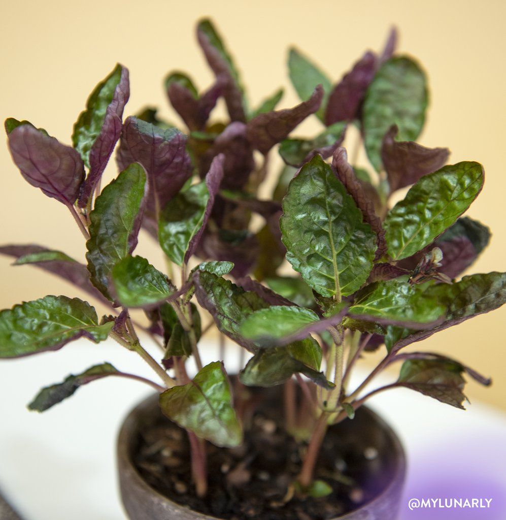 - Another unique plant feature for your indoor space, purple waffle plant (Hemigraphis alternativa)offers both color and texture while helping to purify indoor air. This one is interesting, as the plant requires bright indirect light only in order to look its best—direct light will bleach the leaves and they’ll loose their wonderful red and green coloration.