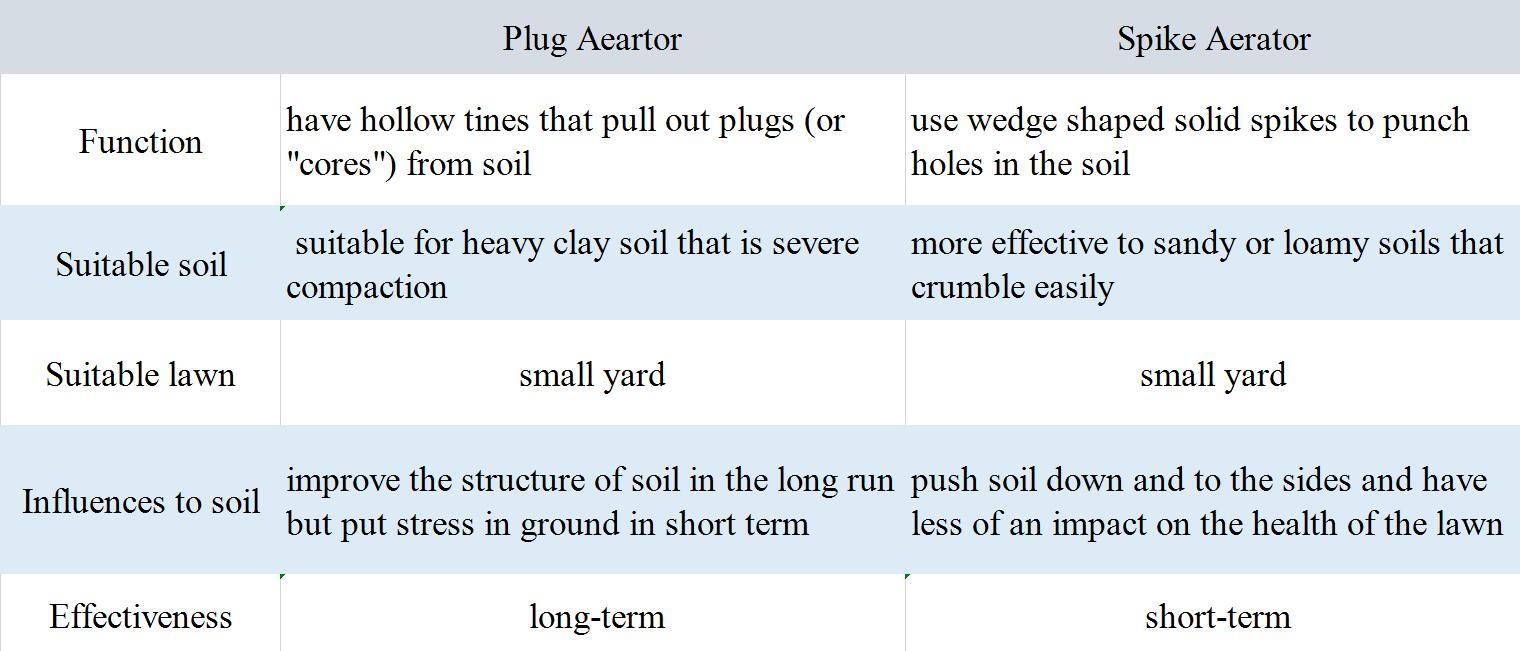 Here is a table showing differences between Gardzen spike and plug aerators: