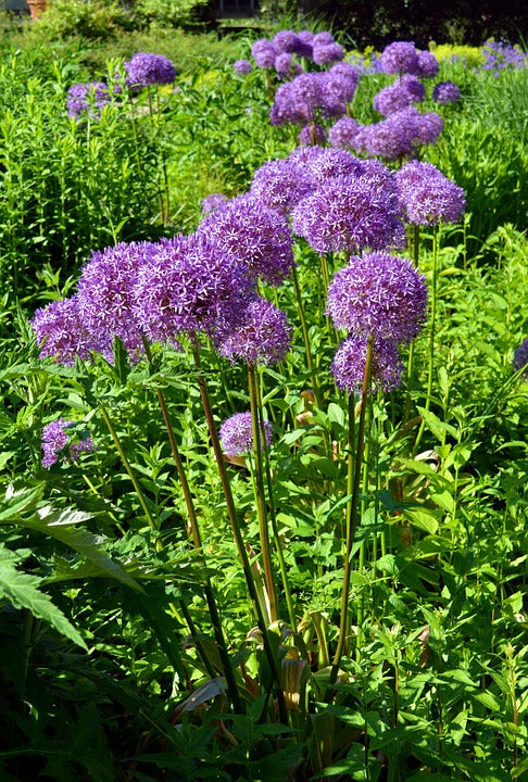 Giant allium, like many members of its family, is fairly easy to grow. Like many alliums, it prefers either a sandy or light loamy soil with good drainage. While giant allium tolerates dry periods and even drought, it does best when kept moist—but not too moist. Overly-wet soil can lead to root rot and other problems, so keep an eye on your soil conditions and moisture levels. Giant alliums are generally pest-free in most areas, making them an easy plant to care for.