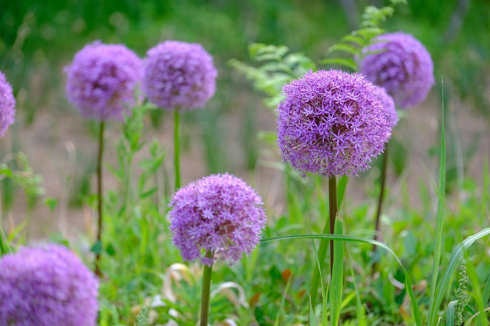 At a recent meeting of our local garden club, a fellow member introduced us to a plant that we frankly find delightful. Giant allium—also know as giant onion, ornamental onion, or Allium giganteum—is the largest member of the allium or onion family and produces striking, whimsical blooms in early/mid summer. With its impressive height and purple poof-ball blooms, giant allium caught our attention and our imagination immediately. We asked a lot of questions, bought some plants to take home, and decided to write a blog about this new gardening feature. Growing giant allium can add a fun twist to any garden, so let’s dig in!